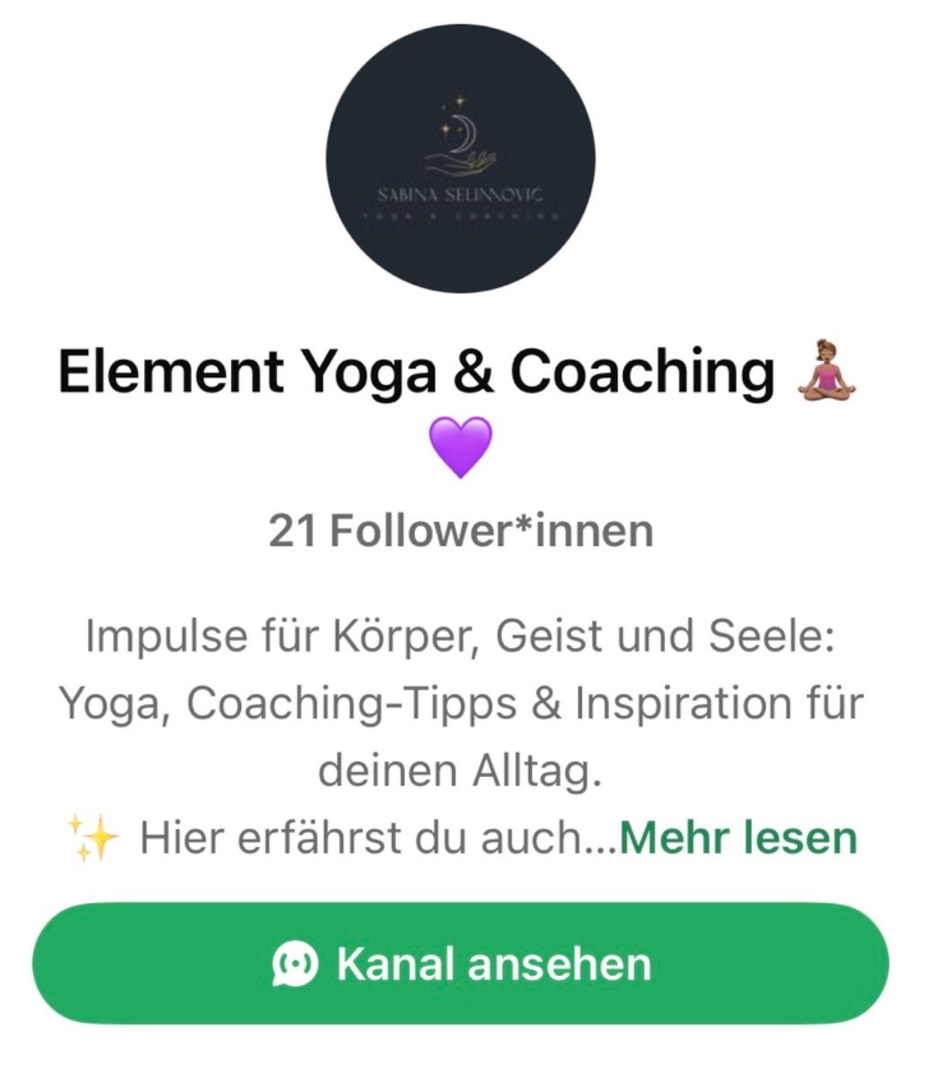 Tritt meinem WhatsApp Kanal bei und erfahre direkt als Erste(r) von den neusten Aktionen, Kursen und Angeboten.